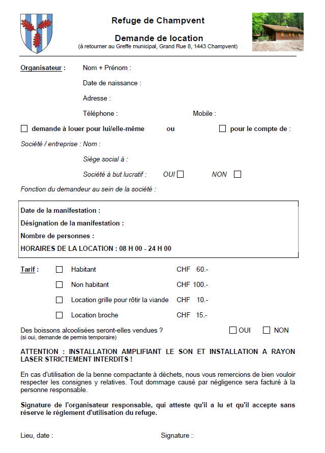 Télécharger le formulaire, et le remettre au Greffe municipal par email ou par courrier postal.