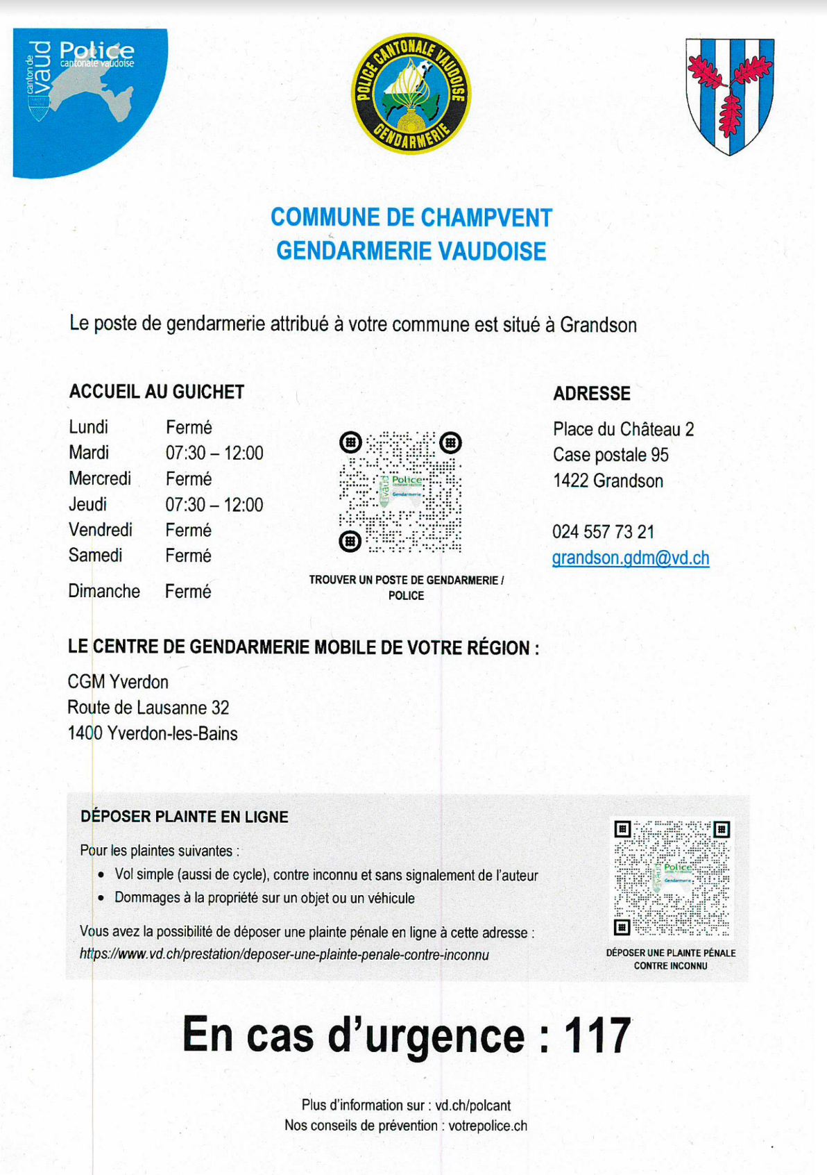 Le poste de Gendarmerie pour la Commune est à Grandson